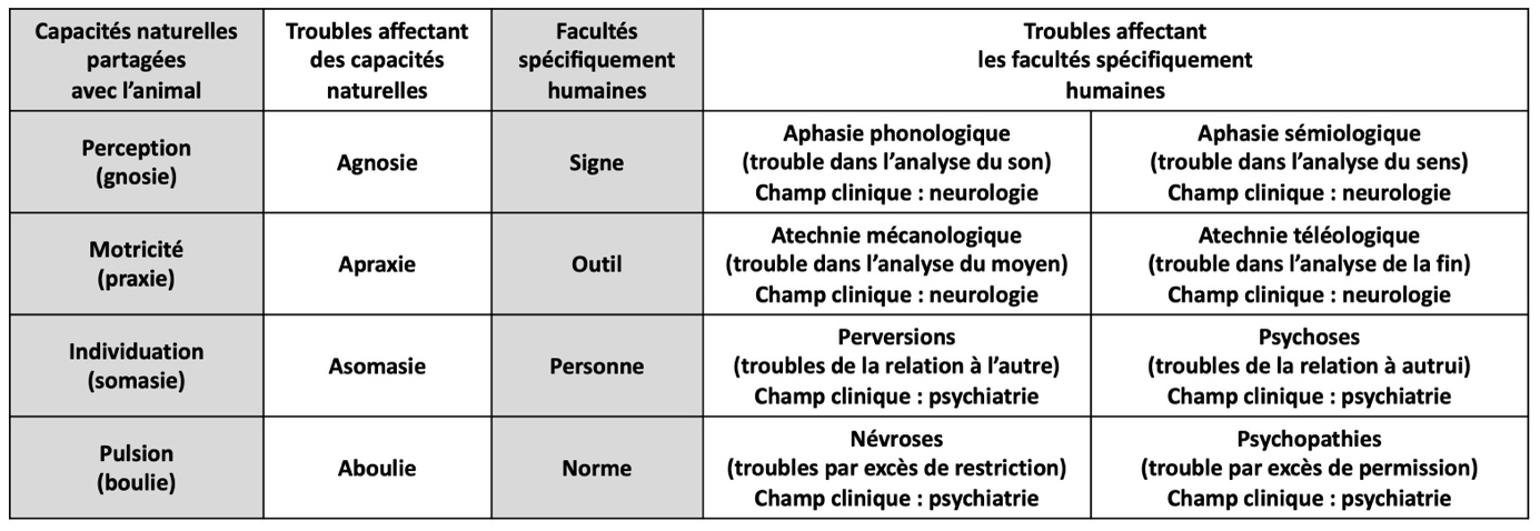 Figure 1. La pathologie comme analyseur de la raison humaine. Aperçu du modèle d’anthropologie clinique de la théorie de la médiation de Jean Gagnepain (1982, 1993) et Olivier Sabouraud (1995).
