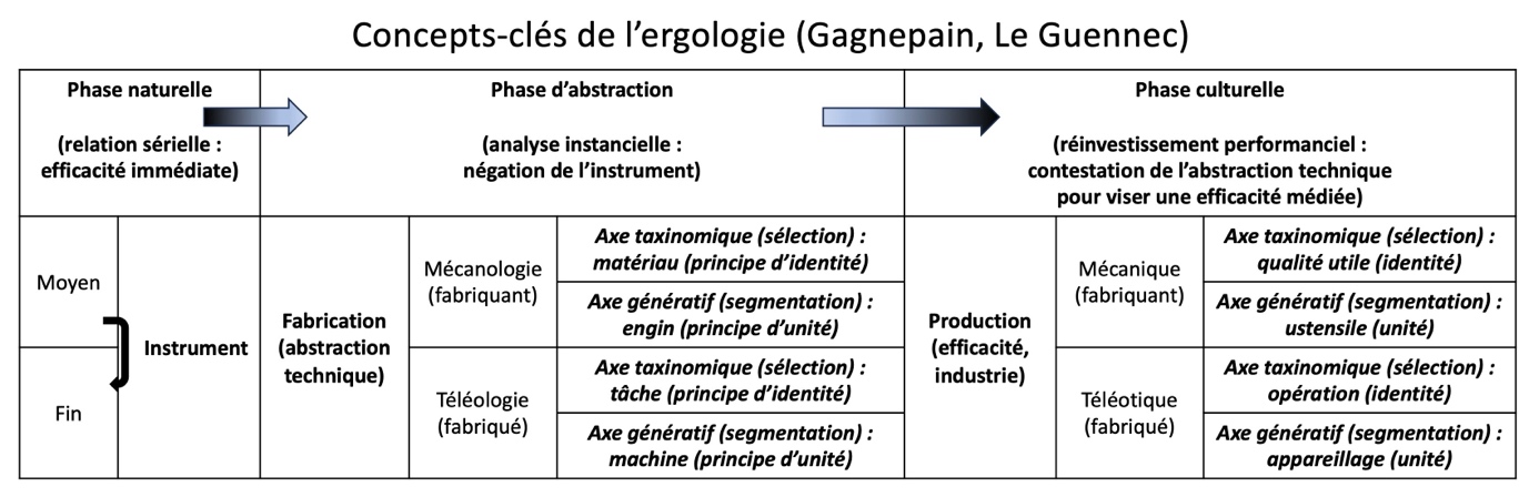 Si l’on ne peut qu’adhérer à l’intérêt accordé à la technique par des auteurs comme Yves Schwartz, Yves Deforge, Jocelyn de Noblet ou Tim Ingold, nos raisons d’y souscrire divergent : à une approche positive fondée sur une description et une catégorisation de situations concrètes pluri-déterminées techniquement, socialement ou éthiquement, nous privilégions une approche dialectique qui fait valoir de l’abstraction à l’œuvre dans une technique dégagée de ses finalités. Ce n’est pas la matérialité physique de l’artefact qui fait l’outil, ni non plus le fait d’obtenir un résultat en le maniant, mais la capacité d’abstraction qu’il suppose pour le produire ou mettre en œuvre le mode opératoire programmé qu’il inclut.
